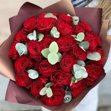 25 red roses with eucalyptus 25 red roses with eucalyptus - image of a bouquet 2
