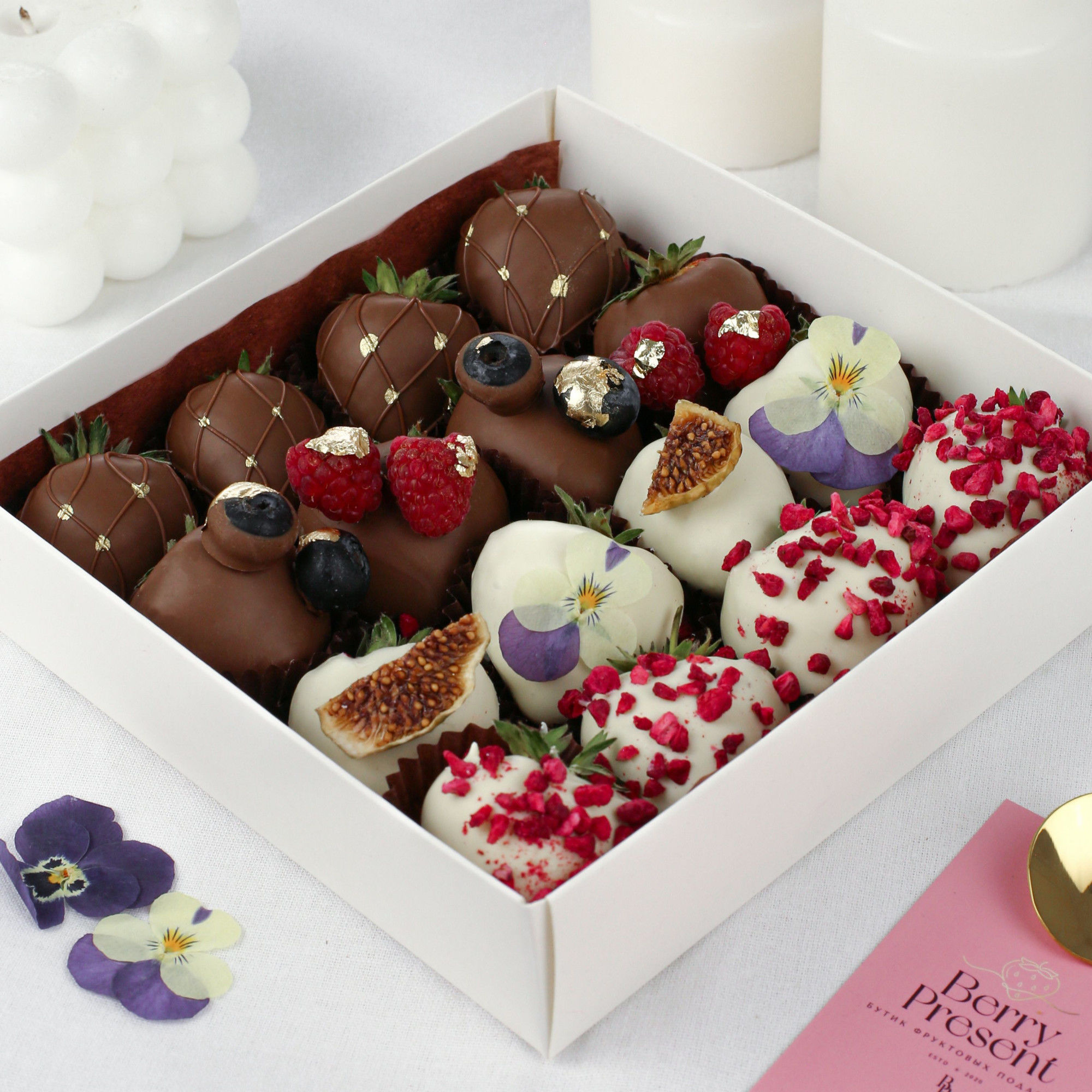 Set of chocolate covered strawberries "Flowers" 16 pcs
