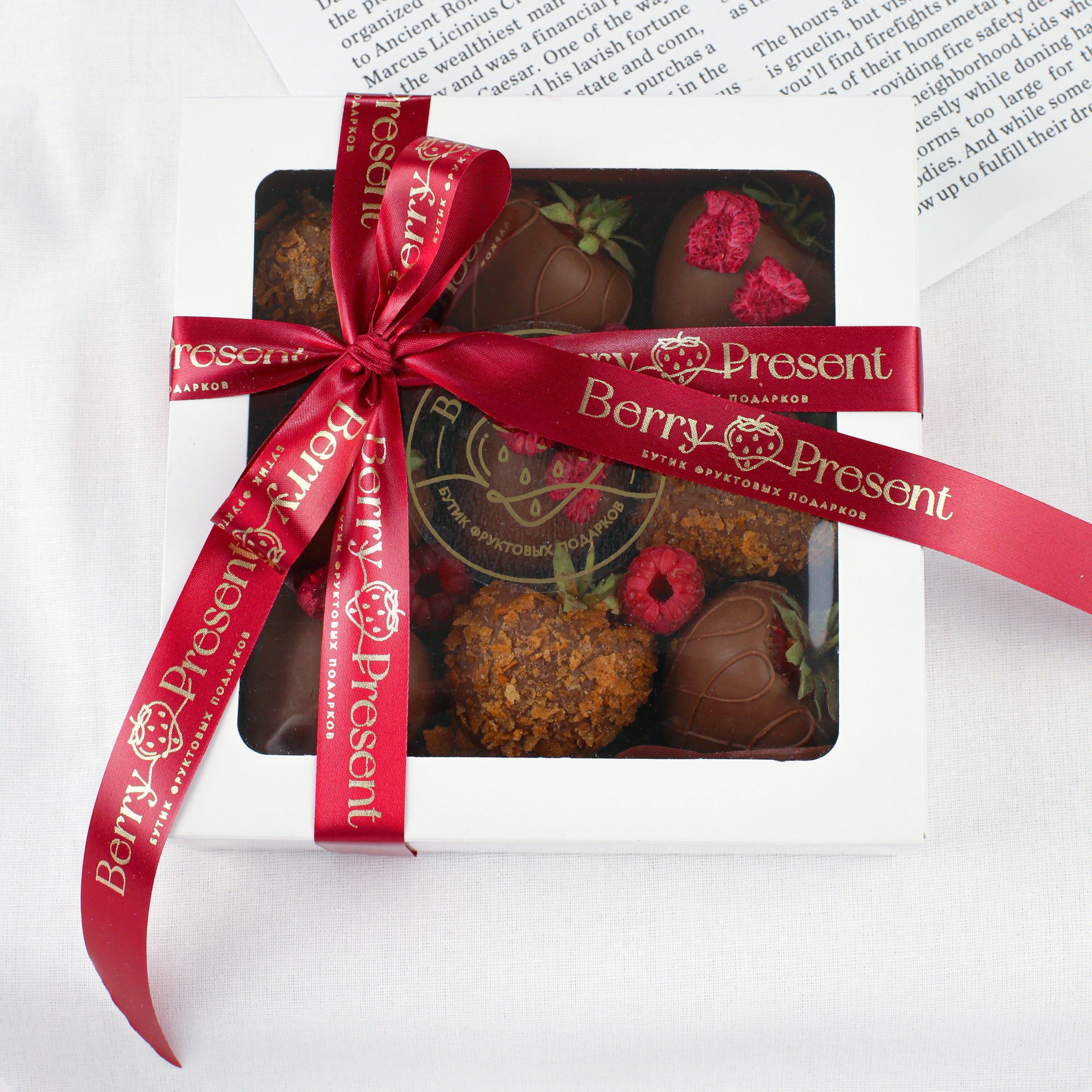Set of chocolate-covered strawberries "Raspberry Paradise" 9 pcs