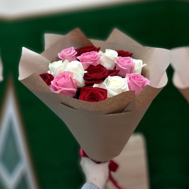 15 разноцветных роз 15 разноцветных роз - изображение букета 2
